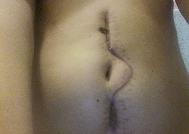 A ono malo je… al nije rupa, ne vidi ti se utroba, raste mlado tkivo prema gore, malo ti izgleda ko velika stonoga.